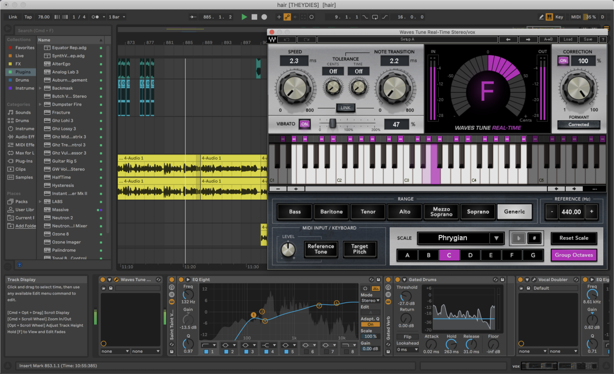 To give a quick example from my own experience, in my work on the track THEYDIES, I’ll show the autotune plugin I used alongside some gating, vocal doubling, and pitch shifting via Ableton’s built in warping tools. I’ve provided the original vocal take alongside the affected version. I would say that the original is “embarrassing” but honestly it’s not to me, despite it being in the most traditional sense a horrid performance—and that’s because it gets right to the point of how I wanted the lyrics to be delivered, without allowing questions around melody to disrupt the stream of consciousness.